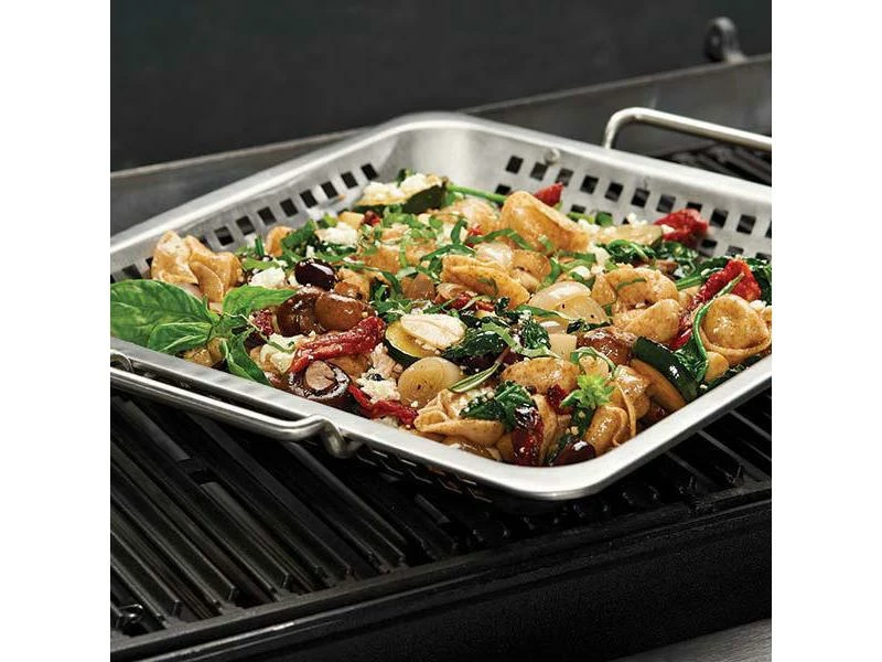 Mit dem Wok von Broil King haben Sie die Möglichkeit, sowohl leckere Gemüse als auch Fleischgerichte auf der quadratischen Grillfläche zuzubereiten. Durch das Lochdesign der Grillpfanne wird Funktionalität mit einer leichten und schnellen Reinigung vereint. Durch zwei integrierte Griffe wird Ihnen die Handhabung unkompliziert sowie komfortabel gestaltet. Zudem weiss sie aufgrund der Fertigung aus Edelstahl durch eine hohe Langlebigkeit sowie Robustheit zu überzeugen.