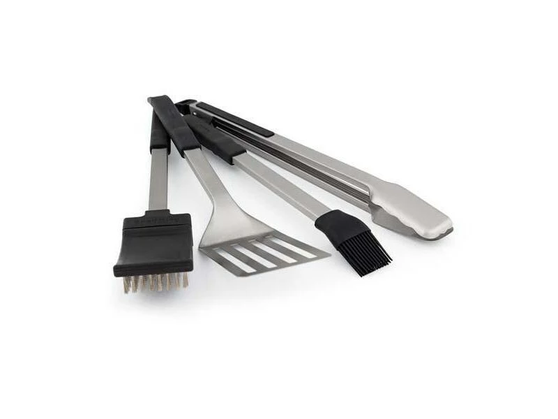 Das Baron Grillbesteckset von Broil King enthält einen Wender, eine verschliessbaren Grillzange, einen Silikonpinsel und eine Reinigungsbürste. Der integrierte Spritzschutz der Reinigungsbürste sorgt dafür, dass beim Abbürsten des Grillrosts kein Schmutz in Ihre Richtung geschleudert wird.