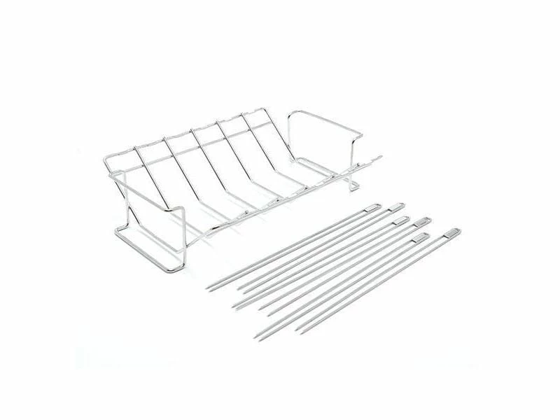 Nutzen Sie das Multi-Gestell aus dem Hause Broil King für die perfekte Zubereitung von grossen Braten, Spareribs oder auch Spiessen auf Ihrem Grill. Das Set besteht aus dem Edelstahl-Gestell mit seitlichen Griffen sowie 6 Doppelspiessen, die ebenfalls aus Edelstahl gefertigt sind.