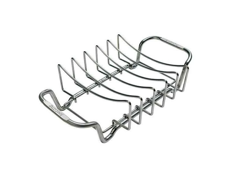 Mit diesem Sparerib- & Bratengestell von Broil King gelingt Ihnen mühelos die Zubereitung saftiger Rippchen. Im Gestell finden 5 Rippchen Platz, die von den 10 mm dicken Edelstahlstreben gehalten werden. Das multifunktionale Design erlaubt es Ihnen ebenfalls grosse Fleischstücke auf dem Bratengestell zu platzieren. Die grossen Griffe unterstreichen die Qualität des Bratengestells und sorgen für eine perfekte Handhabung am Grill.
