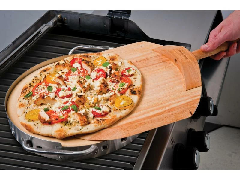 Das Pizzastein-Set von Broil King besteht aus einem 1,2 mm starkem Edelstahlgestell mit einem robusten Pizzastein und einer grossen, aus Holz gefertigten Pizzaschaufel. Das Edelstahlgestell ist mit einer Stosskante versehen, die Ihnen das Entnehmen der Pizza um ein Vielfaches erleichtert. Die 10 mm starken Griffe am Gestell erleichtern die Handhabung zusätzlich.