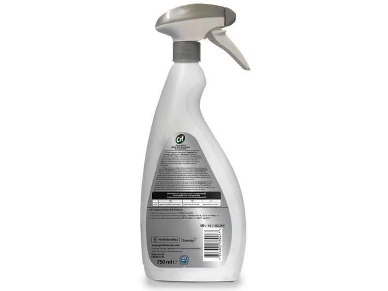 Cif Professional Ofen- und Grillreiniger ist ein gebrauchsfertiger Reiniger für hartnäckige Fettverschmutzungen speziell für Grill und Ofen. Mit seiner anwenderfreundlichen Formulierung ist er für verschiedene Anwendungen im Bereich von Schulen, öffentliche Einrichtungen, kleinere Restaurantbetriebe, Food Trucks etc. optimal geeignet.
