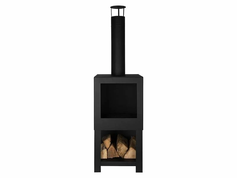 Esschert Design Terrassenofen mit Holzlager, Schwarz