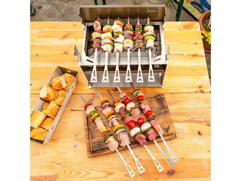 - 6 x kurze (34.5 cm) & 3 x lange Spiesse (46.8 cm)