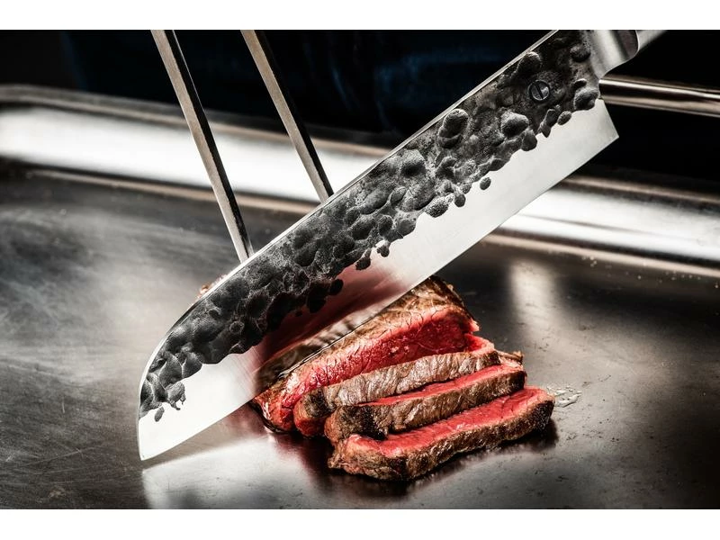 Das Santoku, auf Deutsch «Messer der drei Tugenden», ist ursprünglich eine japanische Klingenform für ein Allzweckküchenmesser. Charakteristisch ist die stumpfe Oberkante des Messers, welche eine Linie mit dem Griff bildet. Des Weiteren steht die breite Klinge weit unter dem Griff hinaus, wodurch genügend Platz für die Finger vorhanden ist.