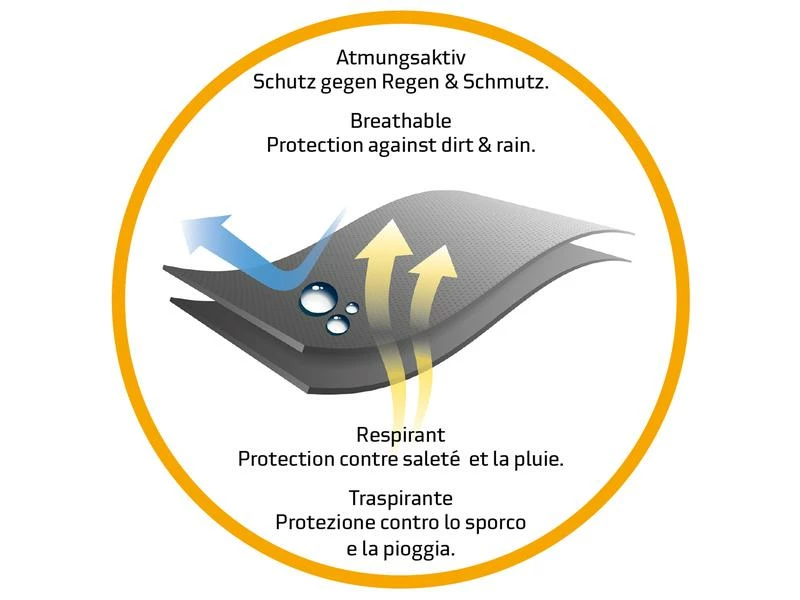Jarda Cover ist ein mehrschichtiges, atmungsaktives und witterungsbeständiges Textil. Die Hülle schützt vor Sonne, Regen, Wind und Schnee. Durch das atmungsaktive Jarda Cover Membran wird die Schimmelbildung reduziert. Die Covers zeichnen sich durch die spezielle Ripstop-Gewebetechnik aus: sie verleiht den Jarda Schutzhüllen eine besondere Leichtigkeit, Flexibilität und Strapazierfähigkeit.