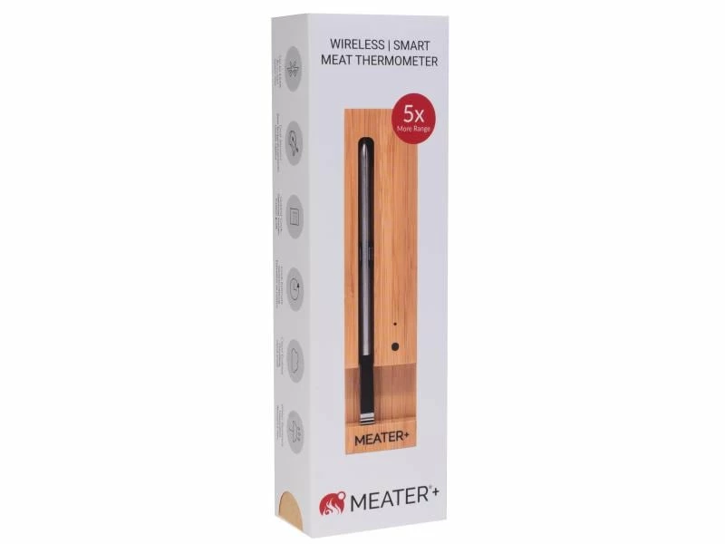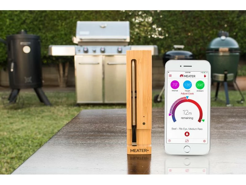 Erzielen Sie beim Braten von Fleisch oder Fisch stets perfekte und gleichmässige Ergebnisse: Mit dem kabellosen Fleischthermometer Meater ist das bequem möglich. Lesen Sie die Innen- und Aussentemperatur (bis 100 bzw. 275 °C) auf Ihrem Smartphone ab; leicht können Sie genau im richtigen Moment reagieren und bei der Zubereitung individuelle Vorlieben berücksichtigen. Speichern Sie Ihre besten Garvorgänge und wiederholen Sie diese mit einem einzigen Tippen; erhalten Sie einen Alarm, wenn es fertig ist.