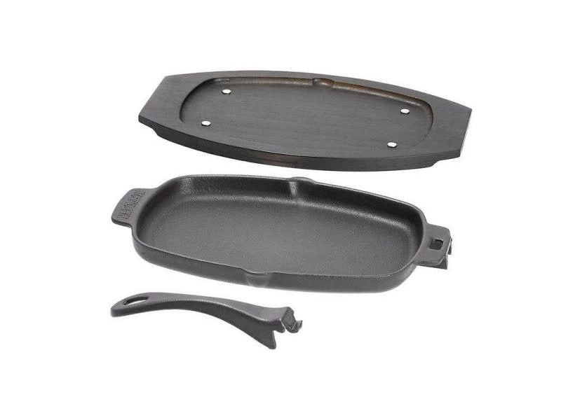- Grillpfanne aus Gusseisen, Holz