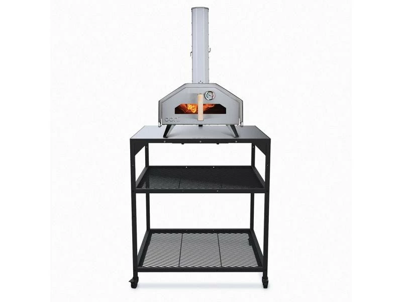 Die Ooni-Modultische sind massgeschneidert für Ihre Aussenküche. Stellen Sie den Ooni-Pizzaofen auf die Arbeitsfläche aus Edelstahl. Der stilvolle Outdoor-Tisch ist aus robustem, pulverbeschichtetem Kohlenstoffstahl gefertigt und mit zwei höhenverstellbaren Ablagen ausgestattet. Die vier feststellbaren Rollen helfen beim Aufstellen des Tisches, die praktischen, eingebauten Haken zum Aufhängen von Pizzaschalen und Zubehör sorgen während des Kochens für Ordnung. Der Tisch hat eine Grösse von 80 x 80 x 90 cm und wiegt 26 kg. Er besteht aus pulverbeschichtetem Baustahl & Edelstahl und ist kompatibel mit allen Ooni-Backöfen.