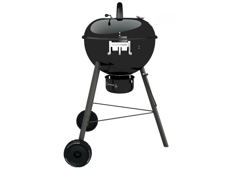Der Chelsea 480 C Holzkohlegrill von Outdoorchef ist der ideale Begleiter auf Ihrer nächsten Grillparty. Mit den zwei Kunststoffrädern bewegen Sie den Grill problemlos an seinen Einsatzort. Das raffinierte «EASY SLIDE»-Trichtersystem ermöglicht Ihnen Ihr Grillgut nicht nur direkt über der Glut zu garen, sondern auch indirekt in der Kugel, sodass Sie Ihre Speisen vielfältig und kontrolliert zubereiten können. Der porzellanemaillierte Trichter und die Kugel sowie der verchromte Grillrost ermöglichen Ihnen eine mühelose Reinigung nach der Benutzung.