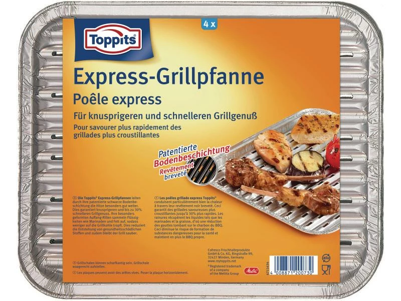 Ich habe die Toppits Grillschale Express für unser Familien-Grillfest verwendet und sie hat ihre Aufgabe perfekt erfüllt. Kein Anbrennen und einfache Reinigung. Super Produkt!