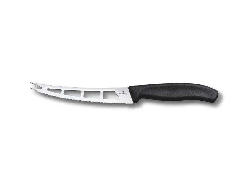 Butter und Weichkäse – beide sind vielseitige und unentbehrliche Begleiter diverser Speisen. Sie sind beim Frühstück genauso beliebt wie beim Abendessen oder als Dessert. Damit Sie diese umso mehr geniessen können, bietet Ihnen Victorinox diesen smarten Alleskönner für alle Arbeiten rund um Butter und Weichkäse. Das Messer verfügt nicht nur über einen scharfen Wellenschliff und eine Gabelspitze, sondern auch über eine einzigartige Klingenlochung, die ein Anhaften des Schneidguts an der Klinge auf ein Minimum reduziert. Mit diesem Messer schneiden und portionieren Sie mühelos und bequem, denn es besticht auch durch seinen ergonomisch geformten Griff.