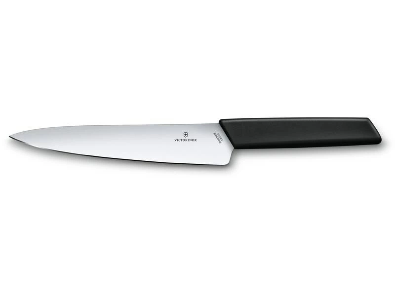 Schönheit trifft bei der Swiss Modern Küchenmesser Linie auf wahre Qualität. Bei der Neuauflage der Swiss Modern Kollektion wurde das traditionelle Nussbaumholz gegen edle, trendige Kunststoffgriffe eingetauscht. Die klarlinigen Griffe passen nicht nur in jede Küche, sondern finden auch die perfekte Balance zwischen Ergonomie und Widerstandsfähigkeit, sodass ultimativer Komfort und müheloses Schneiden sichergestellt sind. Alle Artikel der Kollektion sind leicht zu reinigen und spülmaschinengeeignet – die perfekten Begleiter für alltägliche Küchenaufgaben.
