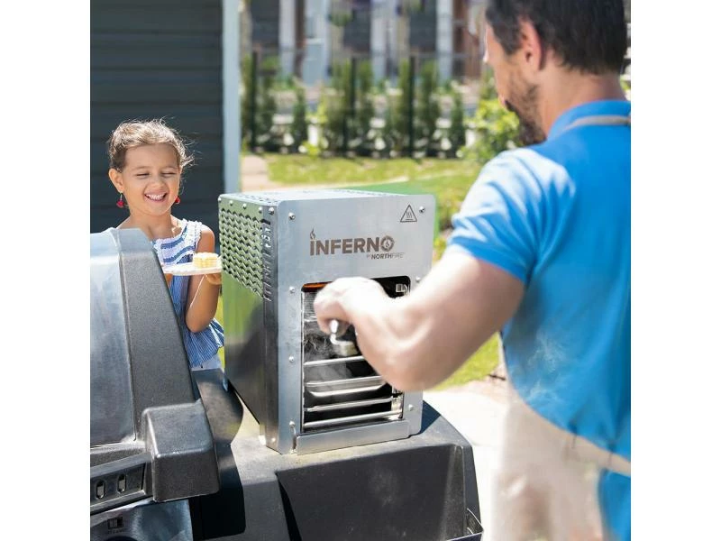 Der Hochtemperatur-Grill von Vivere sorgt für das ultimative Grillerlebnis. Zaubern Sie in Sekunden nicht nur das perfekte Steak, sondern auch geniale Fisch-, Garnelen-, Schweinefleisch-, Hühnchen- und sogar Dessert Gerichte. Der mit Propan betriebenen Hochtemperaturgrill erhitzt sich innert kurzer Zeit auf 800 °C. Die Edelstahl-Innenteile sind spühlmaschinenfest und pflegeleicht. Dank seiner geringen Grösse passt er ausserdem in jeden Haushalt. Verbringen Sie weniger Zeit beim Kochen und Reinigen und nehmen Sie sich mehr Zeit für das Geniessen ihrer zubereiteten Grillspeisen.