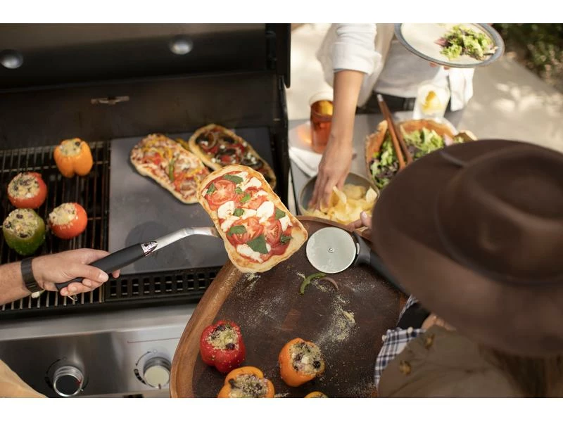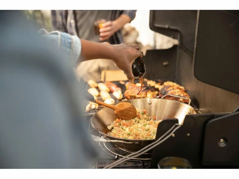 Mit dem komplett neu designten Genesis Grill können Sie alles draussen vorbereiten, anbraten und servieren, genau da, wo die Party stattfindet. Dieses Modell des neu konzipierten Genesis Gasgrills verfügt über unsere grösste und heisseste Sear Zone mit erweiterbarem oberen Grillrost, so dass Hauptgericht und Beilagen gleichzeitig grilliert und serviert werden können. Wenn das Grilliergut fertig ist, können Sie es ganz einfach auf den grossen Vorbereitungs- und Serviertisch legen – für ein nahtloses Grilliererlebnis vom Vorbereiten bis zum Servieren.