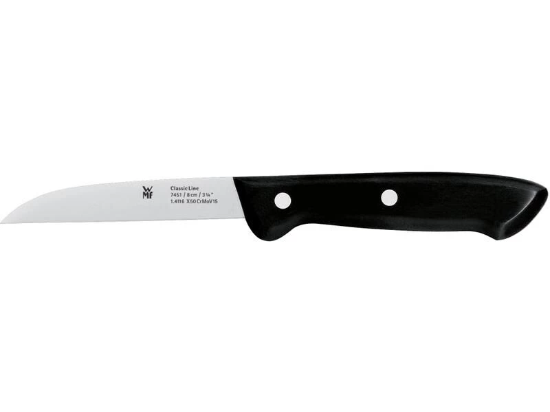 Ein Gemüsemesser hat in der Küche immer etwas zu tun: Äpfel teilen, Karotten putzen, Gurken schneiden. Es ist ein wertvoller Alltagsbegleiter, auf den Sie auf keinen Fall verzichten sollten. Typisch für ein Gemüsemesser ist seine spezielle Form: Es ist insgesamt recht schmal, die elastische Klinge meist gerade, der Rücken gewölbt. Üblich ist eine Klingenlänge von 8 bis 9 Zentimetern, für grössere Gemüsesorten, zum Beispiel für Kohl, gibt es jedoch auch Messer mit Klingen, die bis zu 18 Zentimeter lang sind. Alle WMF Gemüsemesser verfügen über ergonomische Griffe und liegen somit beim Schneiden und Putzen von Gemüse sicher in der Hand.